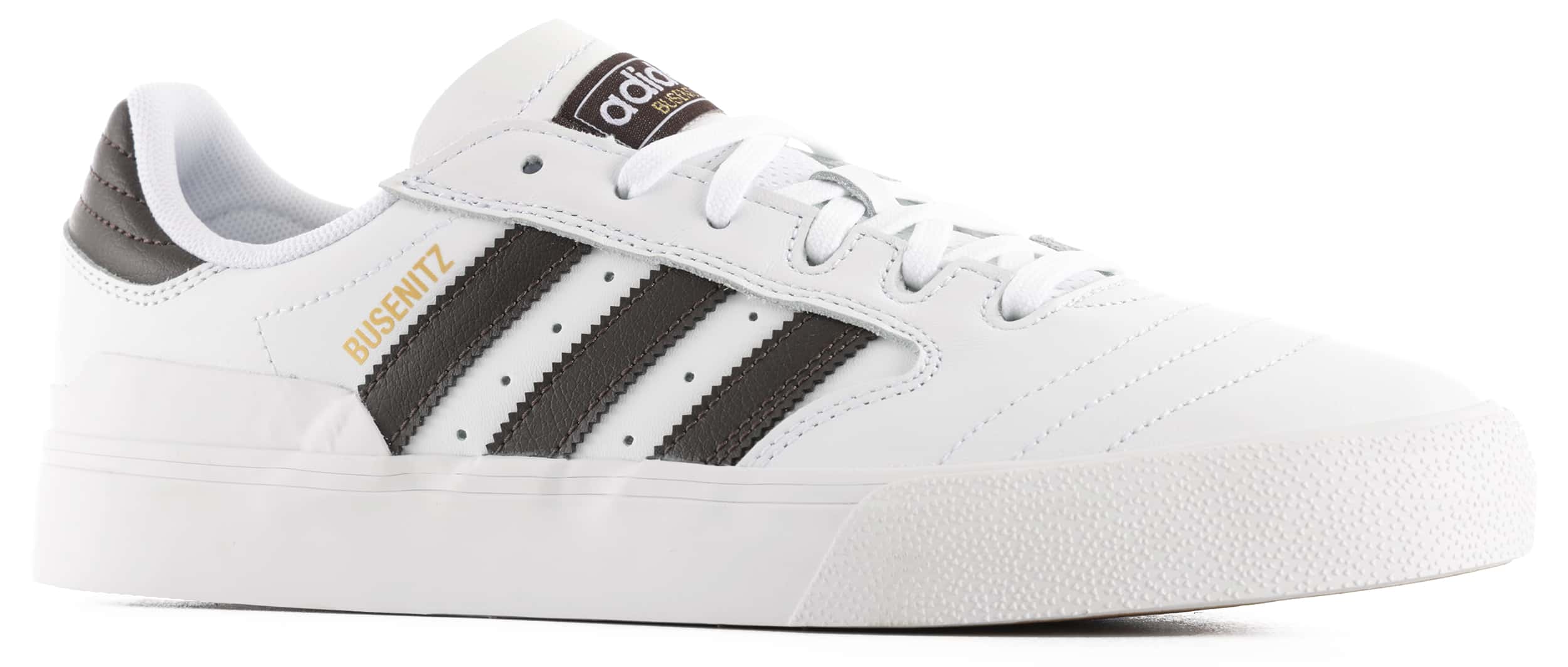 This revamp of Busenitz's legendary vulc shoe retains the same classic silhouette, but is packed full of updated performance features. The outsole has been updated to the team-favorite GeoFlex tread to give the shoe flexibility, and lasting grip in all directions. The abrasion resistant one piece upper is reinforced with an AdiTUFF underlay to extend the life of the shoe even after breaking through the upper. Inside the shoe is an AdiPRENE sock liner for comfort and impact absorption, and the collar has the beloved GeoFit® lining to make these extra comfy all day long.