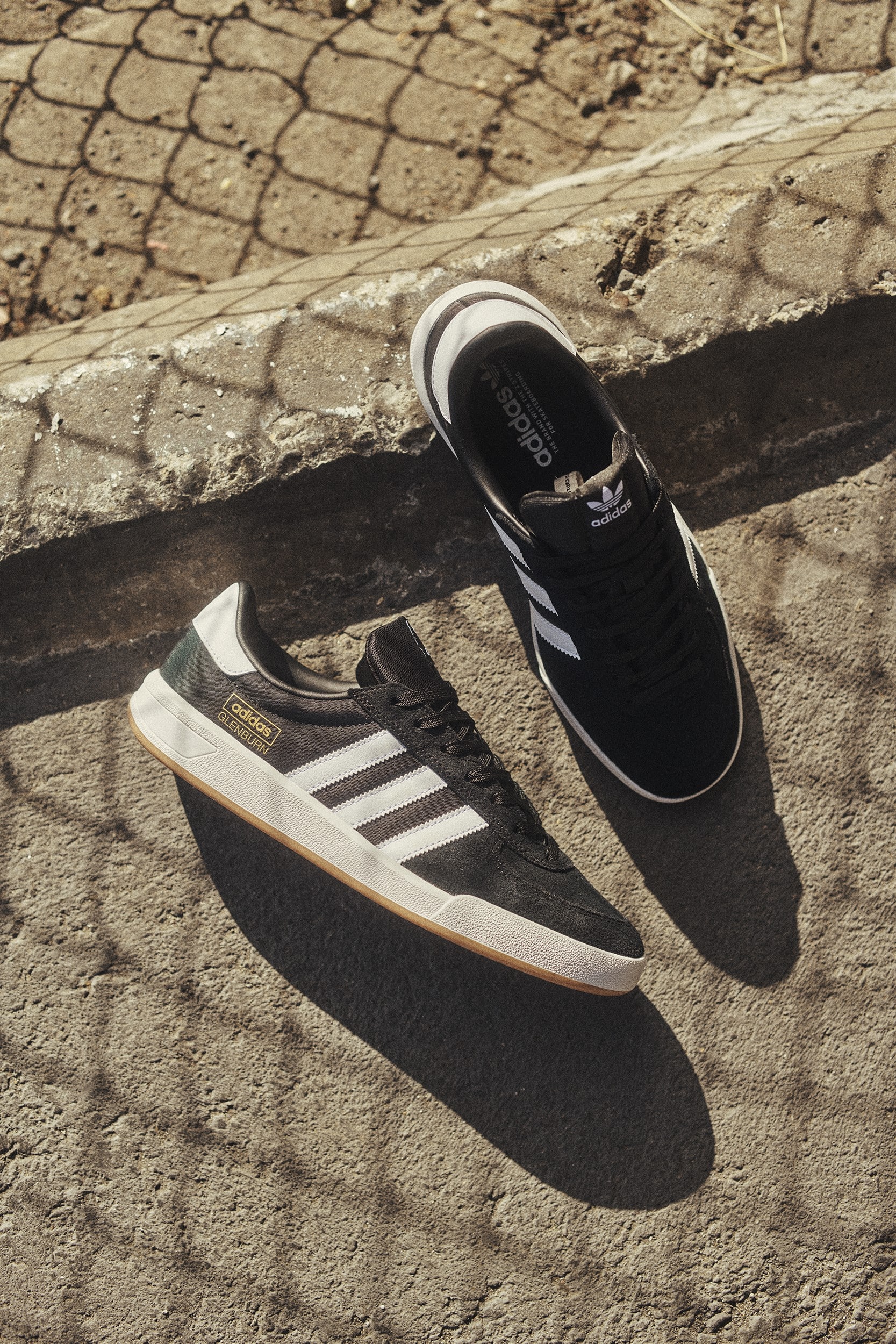 The new Glenburn from adidas Skateboarding is a universal approach. Featuring classic adidas styling, fusing terrace and skate culture, it adapts to your personality with a wide, varied color palette, offering endless pairing options for your everyday creation. Its beauty is its simplicity. Skate-ready materials are mixed to blend durability with lightweight comfort. All colorways feature a dual-layered full-suede leading frontal panel, with leather and suede toebox options. A breathable nylon rear-quarter panel, in addition to suede tonal versions, makes the Glenburn tailorable to individual needs. The plimsole inspired outsole brings grip and board feel, with an instant broken in feel.