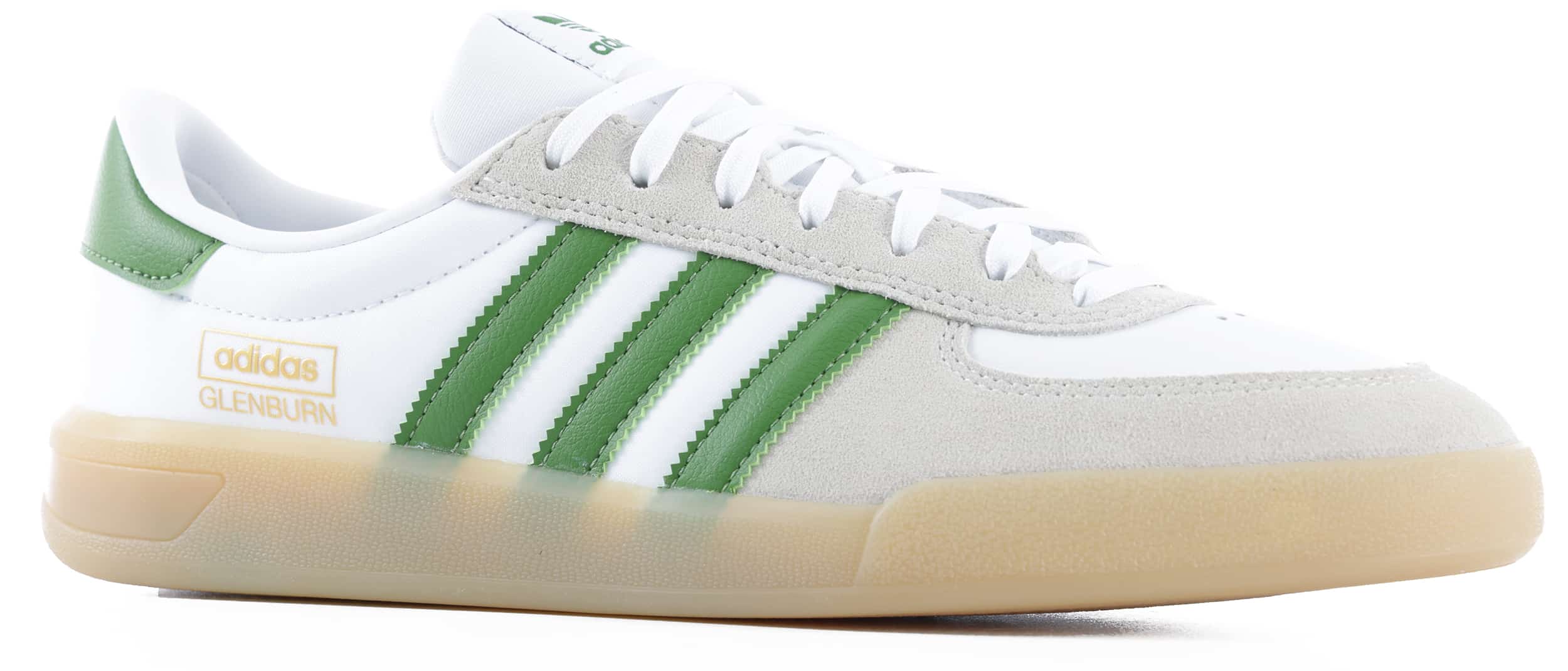 The new Glenburn from adidas Skateboarding is a universal approach. Featuring classic adidas styling, fusing terrace and skate culture, it adapts to your personality with a wide, varied color palette, offering endless pairing options for your everyday creation. Its beauty is its simplicity. Skate-ready materials are mixed to blend durability with lightweight comfort. All colorways feature a dual-layered full-suede leading frontal panel, with leather and suede toebox options. A breathable nylon rear-quarter panel, in addition to suede tonal versions, makes the Glenburn tailorable to individual needs. The plimsole inspired outsole brings grip and board feel, with an instant broken in feel.