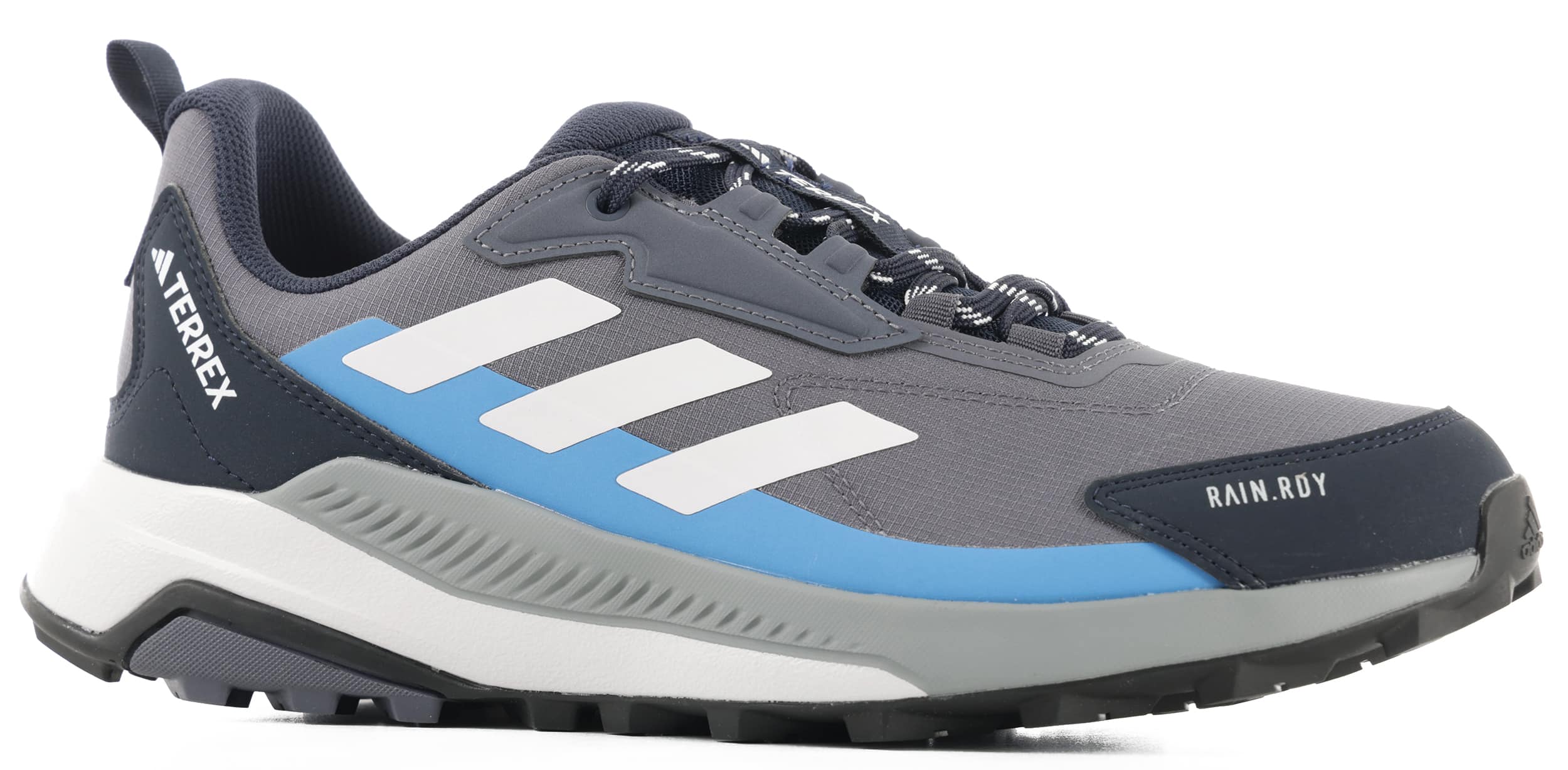 Lace up and explore with the Adidas Terrex Anylander Rain.Rdy Hiking Shoes, engineered to keep you comfortable and dry on any adventure. These waterproof hikers feature a mid-height cuff for crucial ankle support and a cushioned midsole for lasting comfort on long treks. RAIN.RDY technology works in tandem with a gusseted tongue to effectively seal out the elements, ensuring your feet stay dry in wet conditions. Built for long-haul durability, they're equipped with a Traxion outsole for a sure-footed grip across varied terrain. Plus, by using a blend of at least 20% recycled and renewable materials, these shoes help reduce waste and lessen reliance on finite resources, so you can explore responsibly.