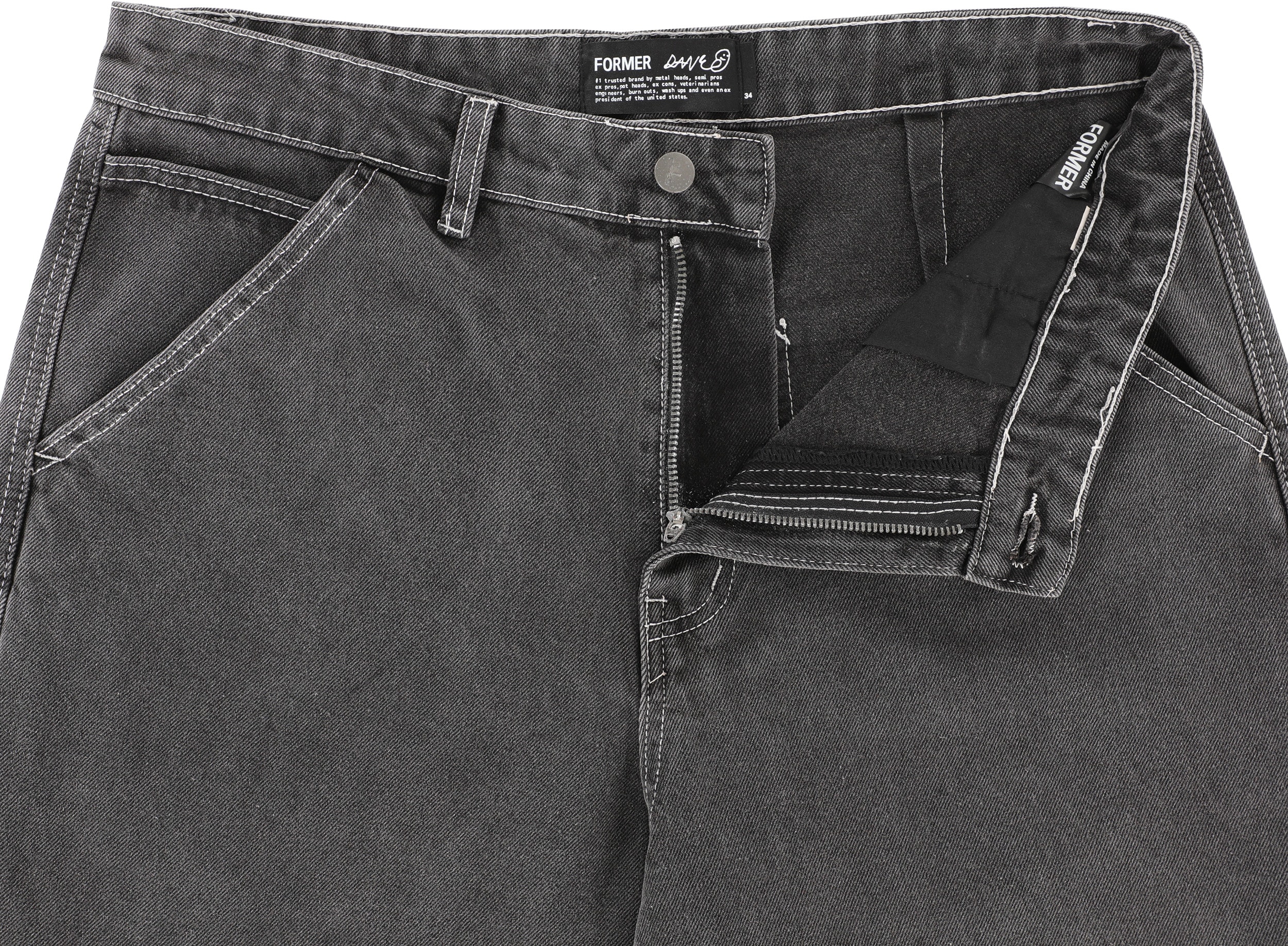 Rugged workwear-inspired jeans don't have to be uncomfortable to be durable. Instead, they should be baggy, comfortable, and excellent to skate in, so Dane Reynolds made sure that was possible with these Former Flatline Denim Jeans. Every detail is meticulous, from the fixed waist to the variety of pockets, securing these jeans as an essential foundation for those who prioritize function, quality, and unwavering support wherever they go.