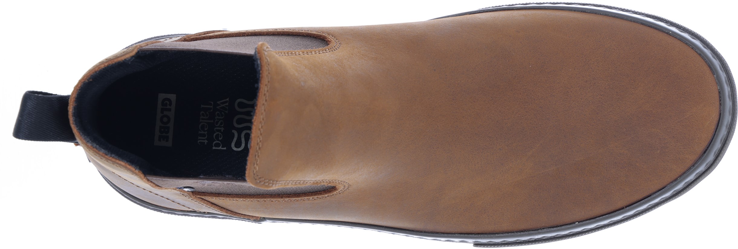 The Globe Dover II is a vulcanized high-top slip-on skate shoe inspired by the classic Aussie Chelsea Boot. It's designed for skateboarding and features a Shockbed insole for impact control and a Super-V outsole for enhanced grip and board feel.