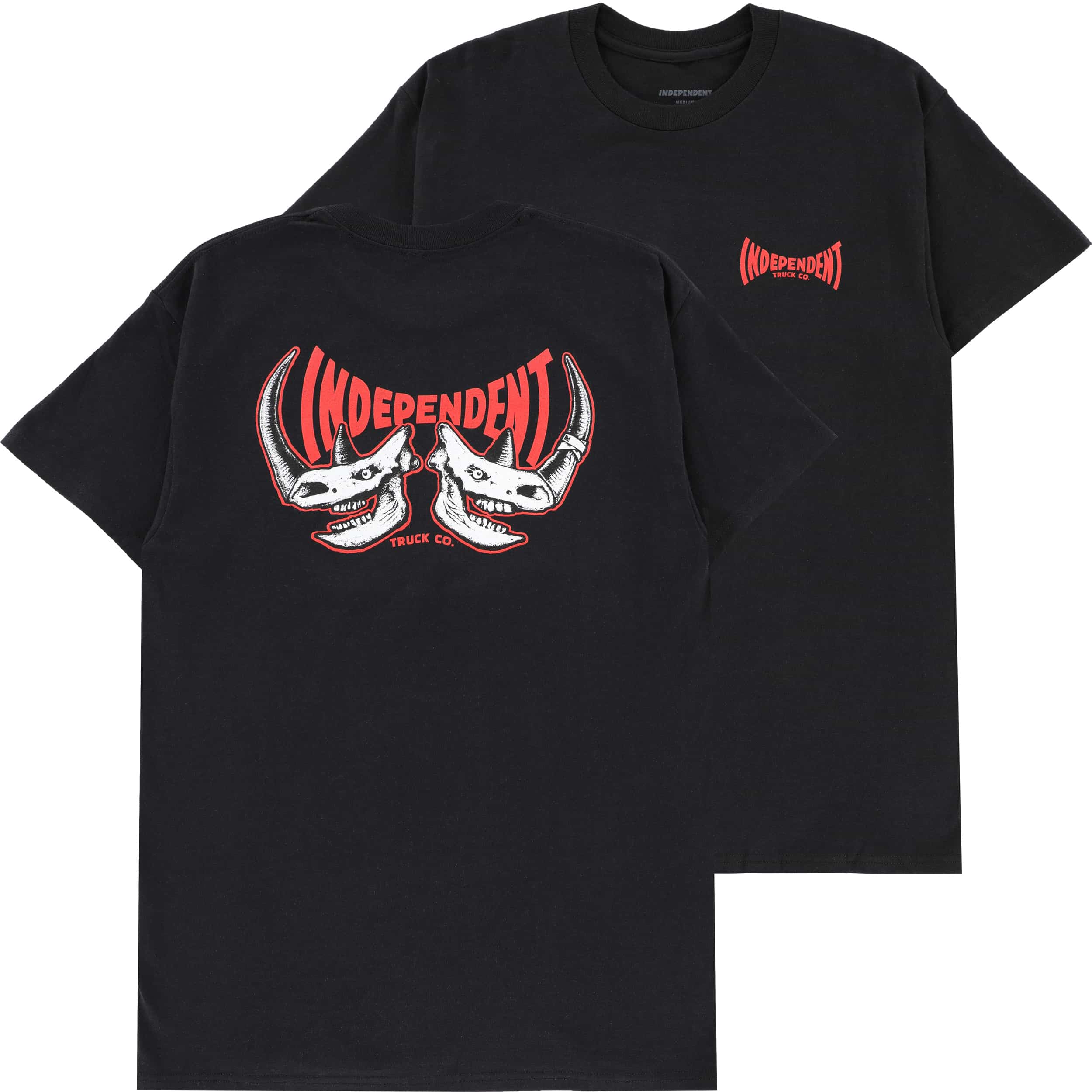 The Independent Rhino Span men's short-sleeve regular fit t-shirt features small front and large back Independent Rhino Span artwork printed in soft hand ink. Artwork by Lance Mountain.