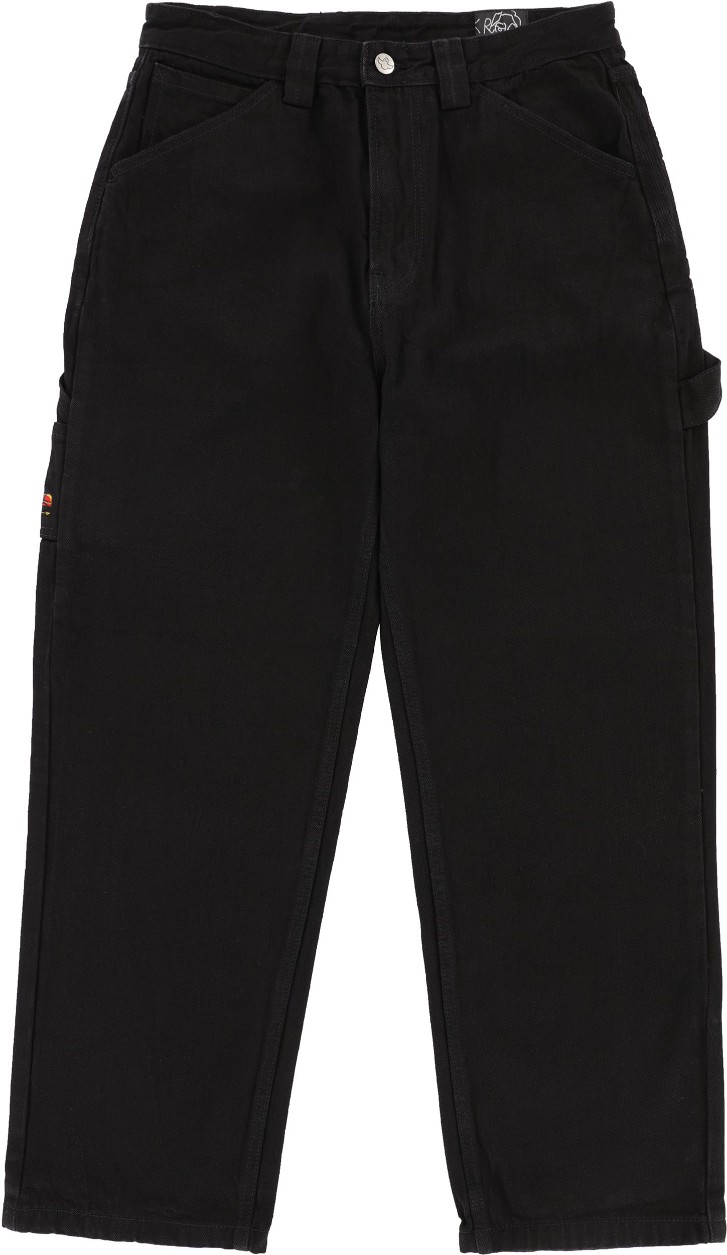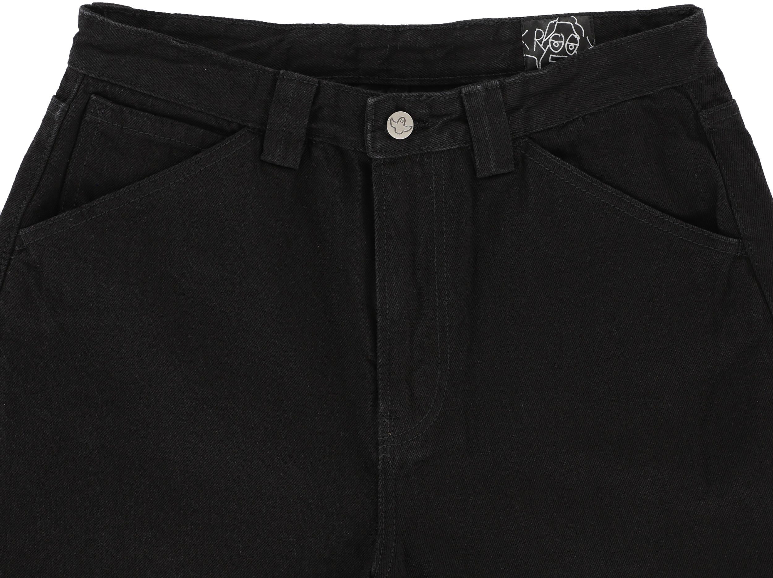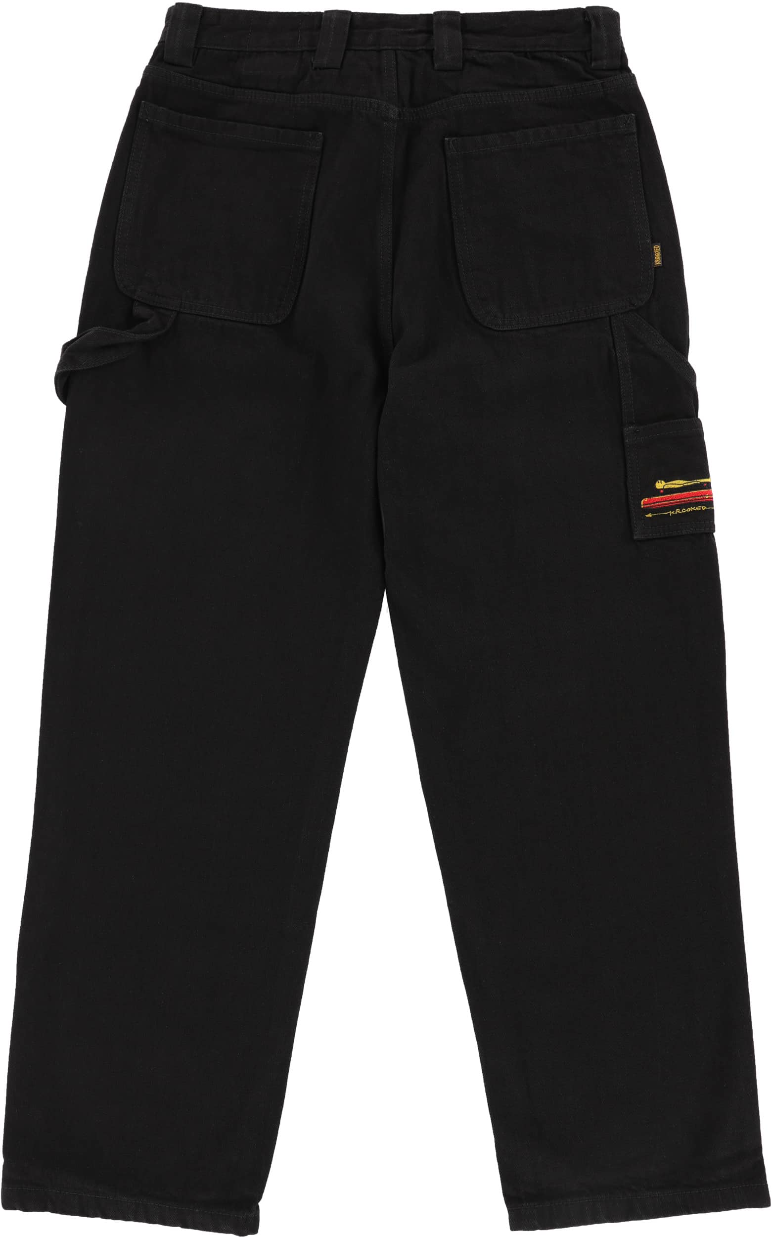 Roll in style with the Krooked Koffin Carpenter Jeans. These pants are built tough with cotton denim and a relaxed fit that's perfect for skating. They've got all the right pockets, plus you've got a hammer loop, and the Krooked embroidery on the leg utility pocket is the perfect final touch of steez.