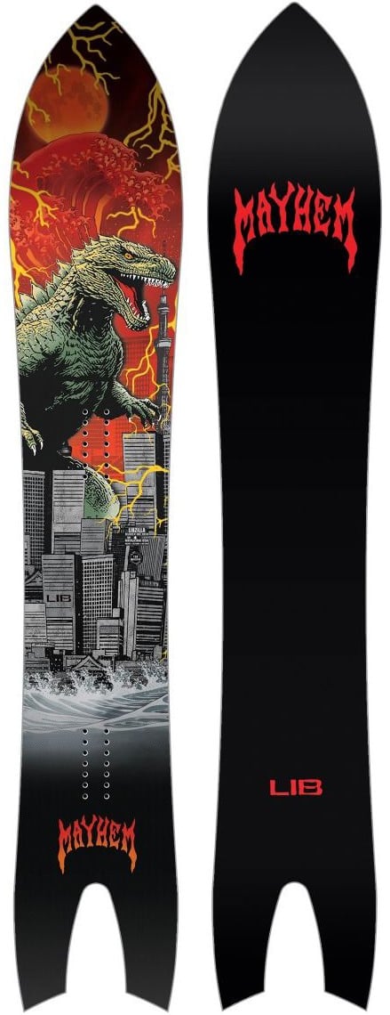 The Lib Tech x Mayhem Libzilla Snowboard is a Matt Biolos-designed trench monster featuring a low-entry floaty nose and a deep swallowtail that allows you to effortlessly plane over massive amounts of powder while maintaining surgical control. Its progressive sidecut transforms this powder-hungry shape into a hard-carving machine on groomed resort runs, ensuring you don't lose performance when the fresh tracks are gone. Built with OP+ construction and a sintered Knife Cut base, it provides the explosive energy and speed needed to charge through deep valleys and navigate tight trees with prehistoric power.