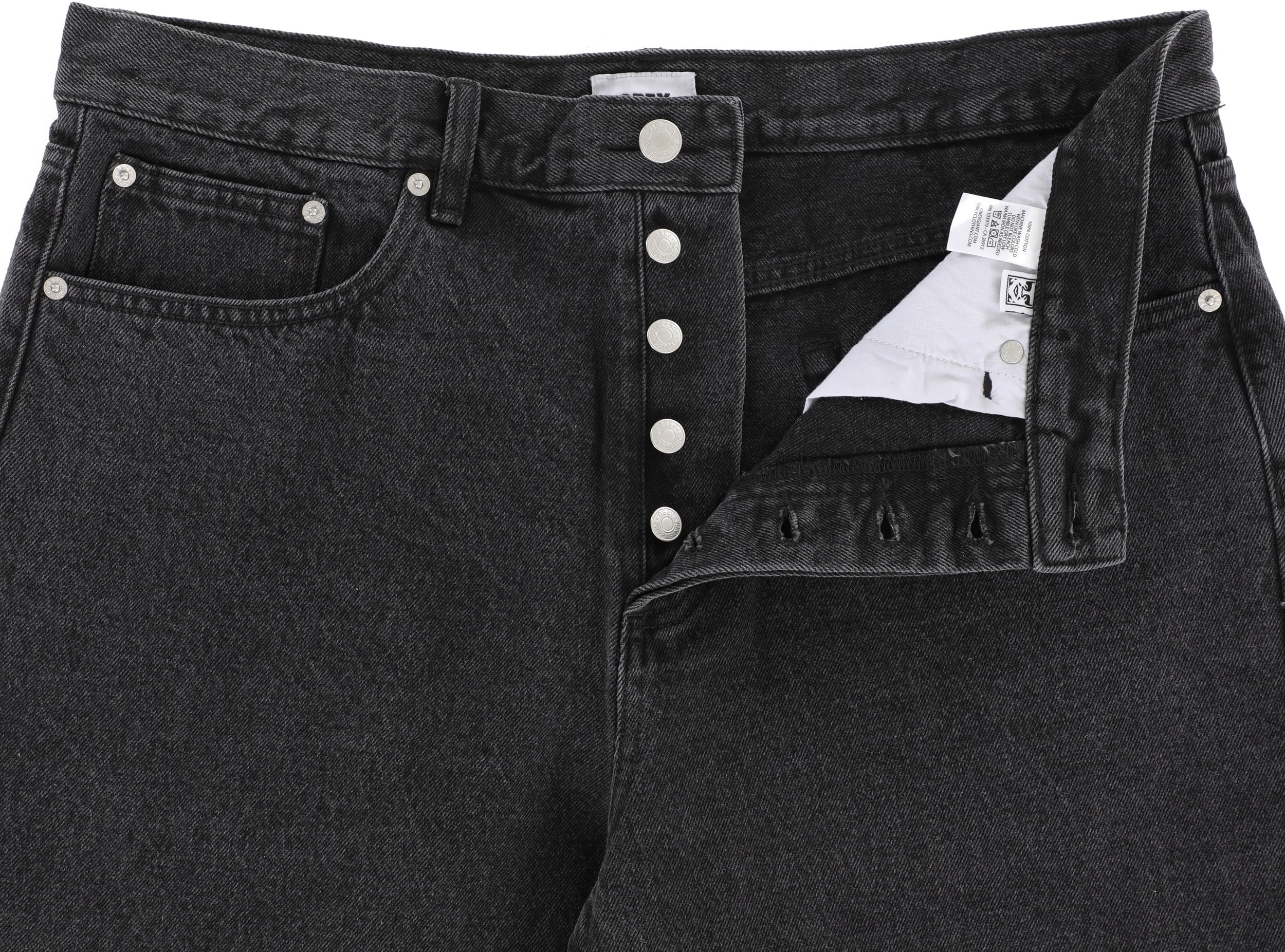 The Obey Classic Baggy Denim Jeans are a staple, bringing that classic skate style to the streets. These pants are dialed in with a baggy fit and tapered leg for that perfect look. They feature a button fly, 5-pocket denim styling, and a killer leather Obey label with clean detailing, so you know the steez is on point.