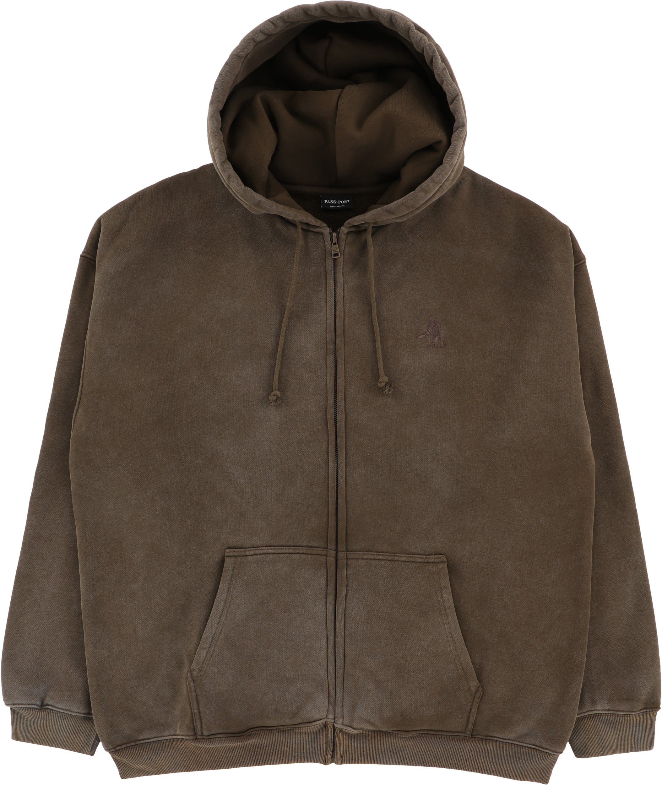 Pass~Port Solid Workers Zip hood in washed bark from range #45. Made from 380GSM Cotton Poly Blend. The Digger Club Hoodie also features digger embroidery on chest and drawstring hood. Finished in a heavy weight fleece with an oversized boxy fit.