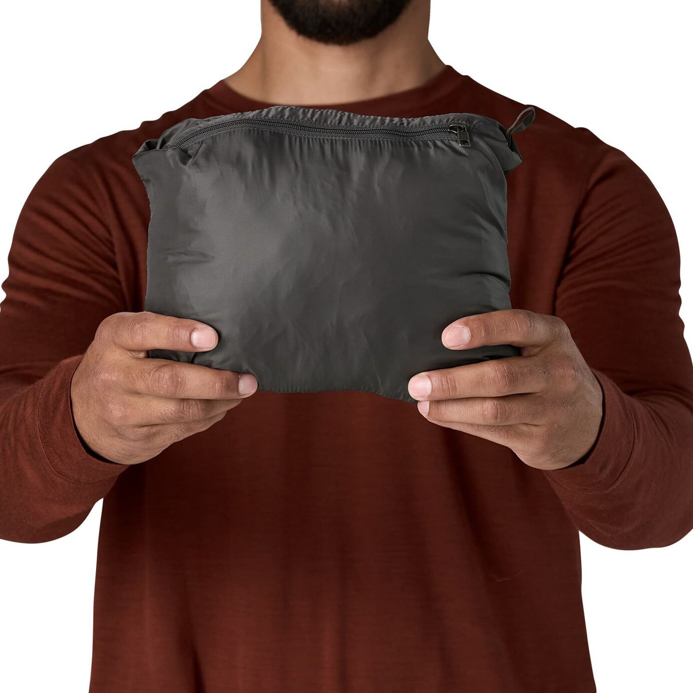 • Two zippered handwarmer pockets have cleanly finished zipper garages; internal zippered chest pocket doubles as a stuffsack with a reinforced carabiner clip-in loop