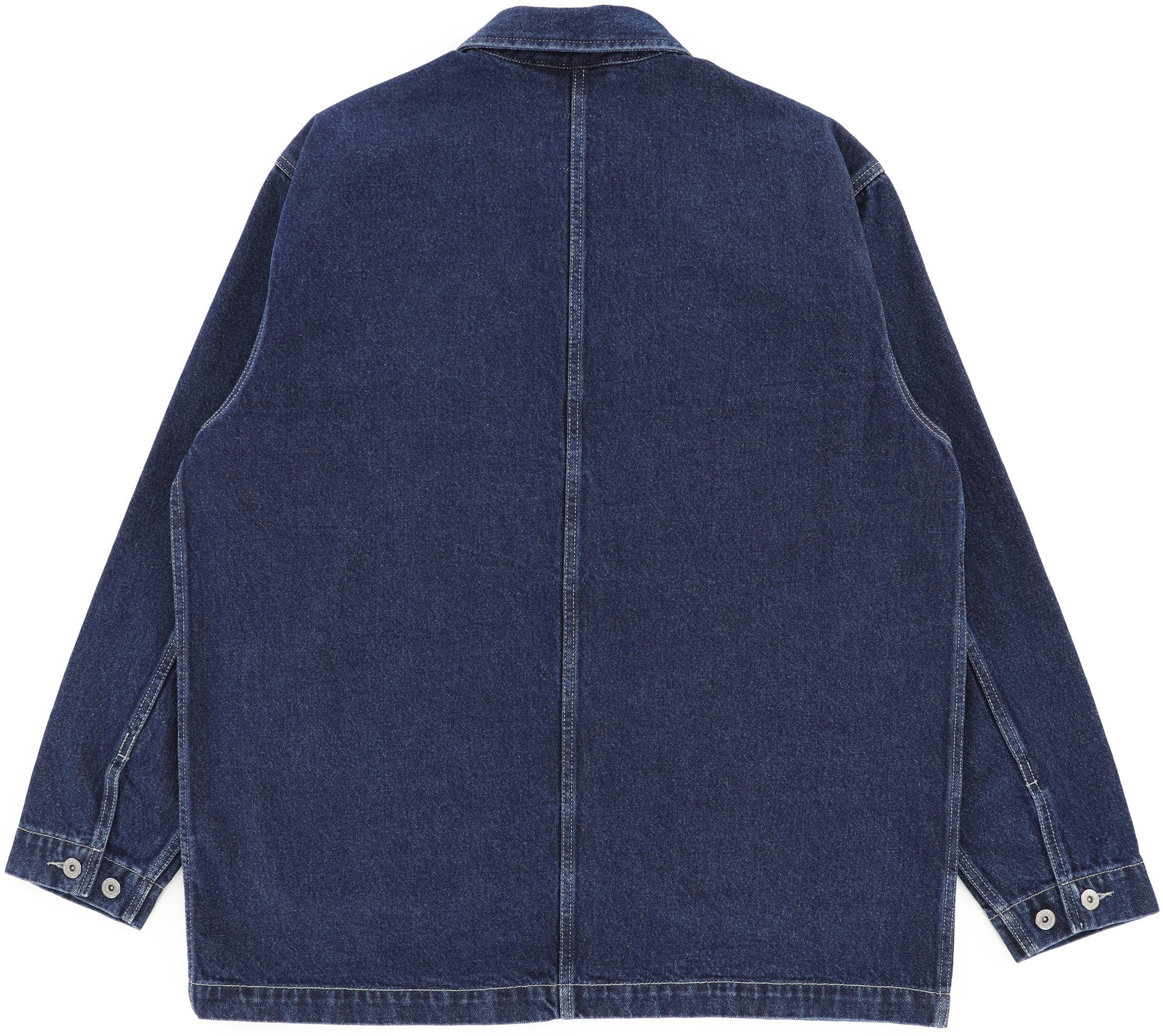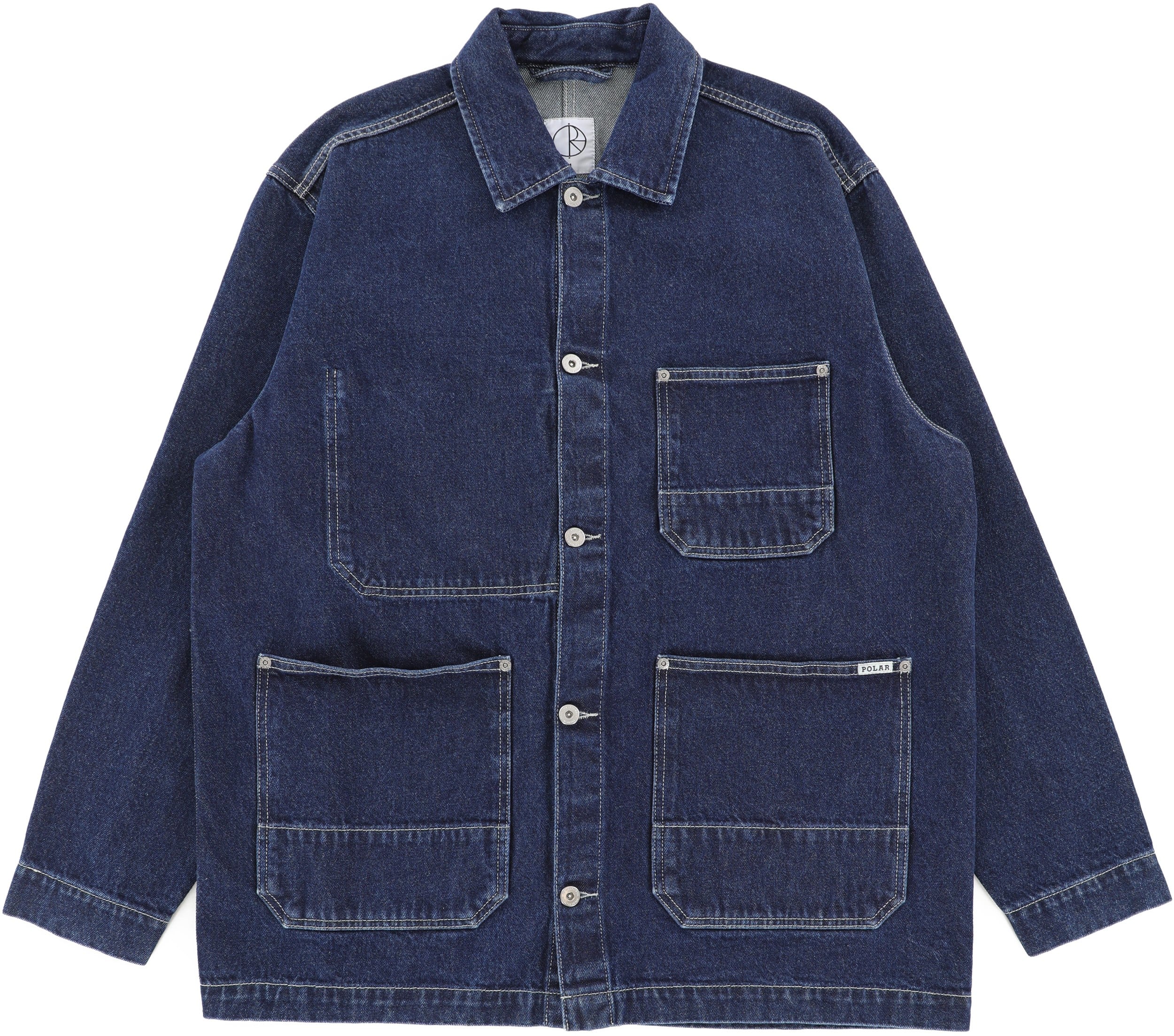 The Polar Skate Co. Ezra Jacket is a premium heavyweight denim chore coat. Built for longevity, this jacket is detailed with custom silver-tone buttons and reinforced roomy pockets that provide ample space for your tools without sacrificing its classic silhouette. The combination of sturdy denim fabric and utilitarian design ensures it handles the rigors of skateboarding while maintaining a timeless aesthetic that works perfectly for daily wear.