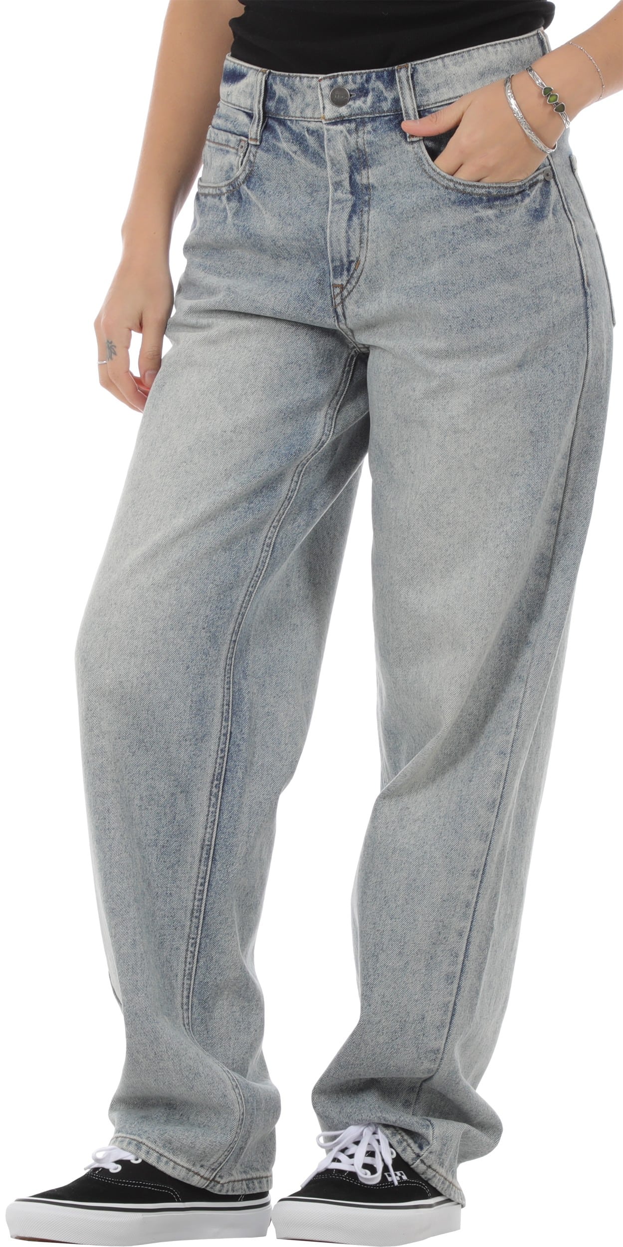 The RVCA Women's Coco II Jeans are a solid choice for a laid-back, comfortable style. Built with a durable cotton denim construction, they feature a relaxed fit and low rise, making them a versatile staple for any casual outfit.