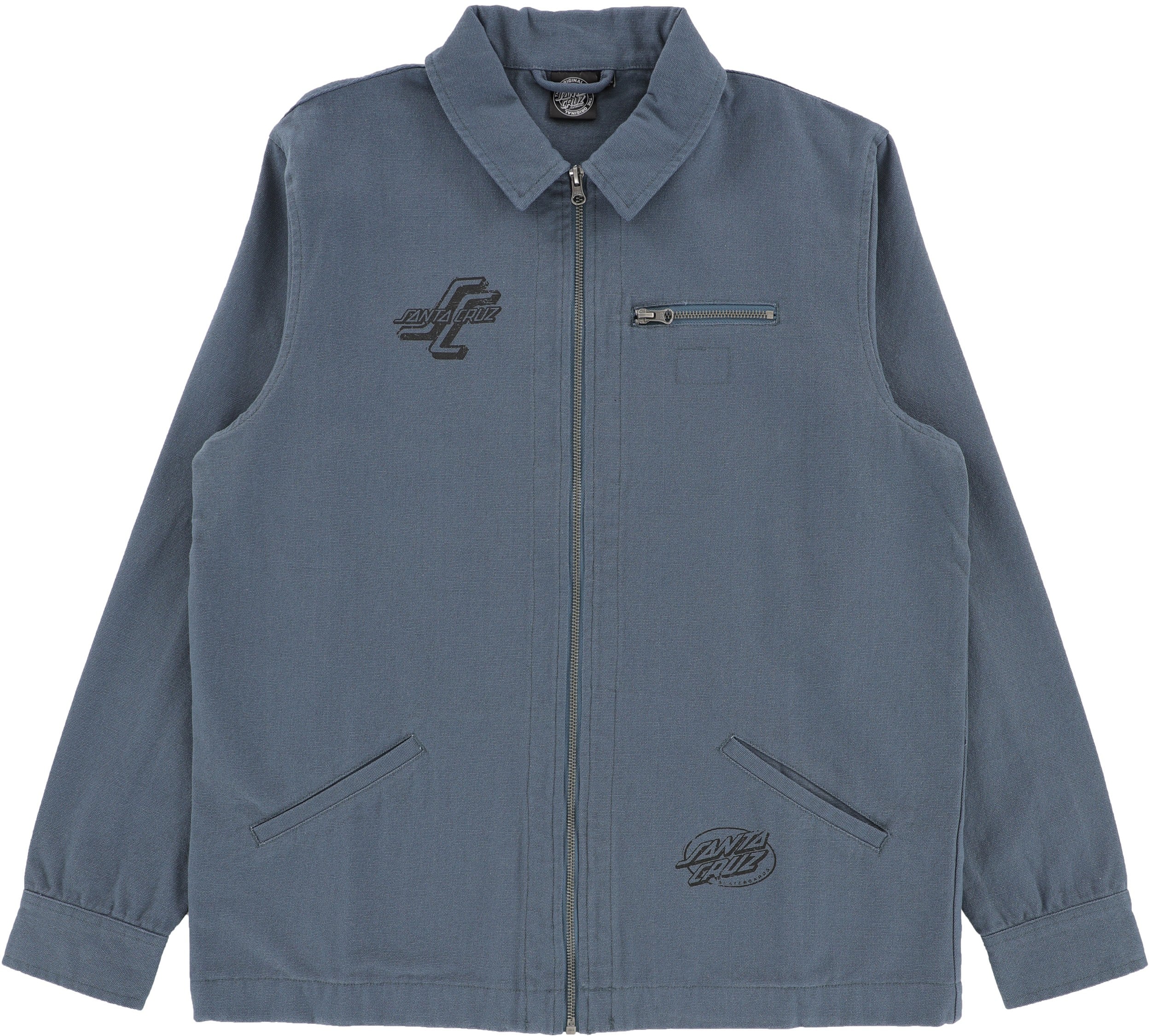The Santa Cruz Woodcut Classic Work Jacket is a rugged twill coat that offers a heavy-duty barrier against abrasions during long street sessions. This regular-fit layer is built with a metal front zipper and snap cuffs, allowing you to quickly adjust your airflow and secure your sleeves while you're on the move. Featuring multiple zippered and welt pockets, it provides safe, dedicated storage for your phone and skate tools, ensuring nothing falls out while you're hitting gaps or cruising the park.