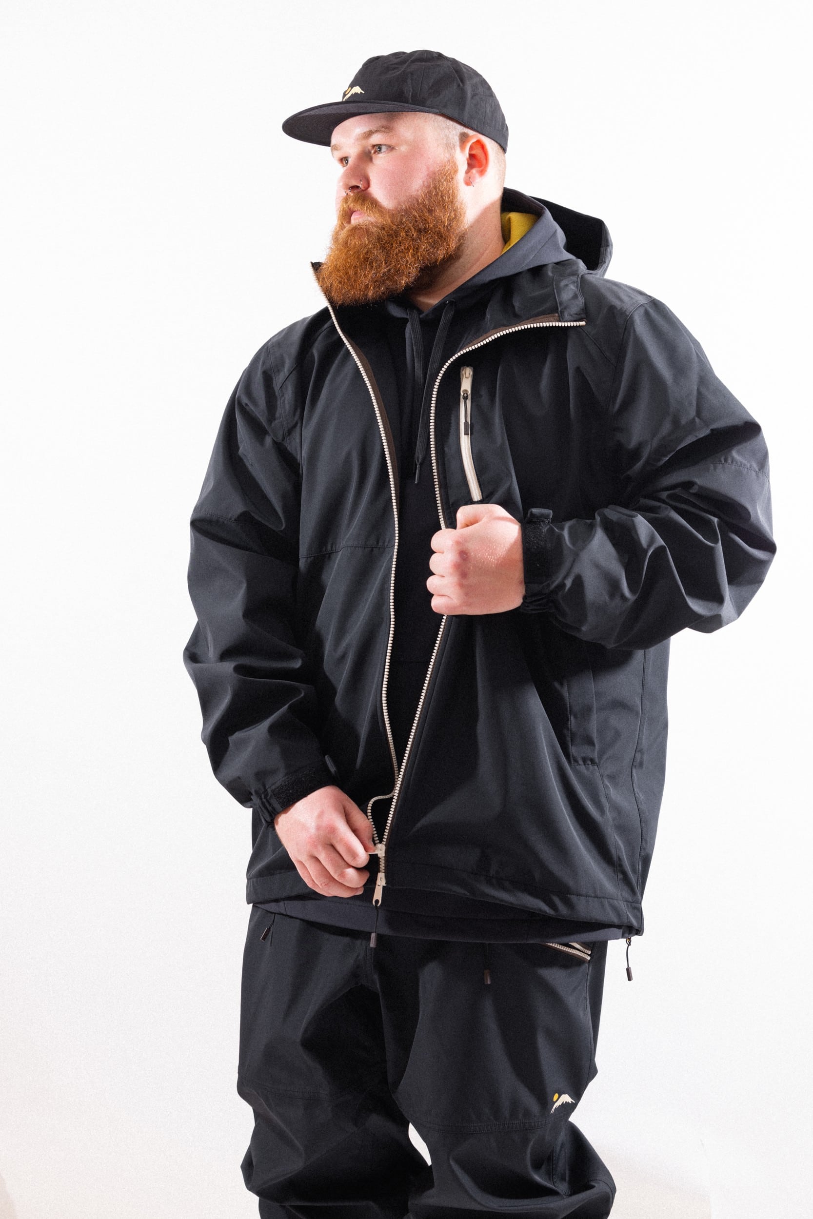 It rains a lot in the PNW. Umbrellas have not been discovered here yet. Thus, this. Render all weather obsolete with this extremely adequate technical shell made from overstock, recycled materials. 20k waterproof, 20k breathable, 3 Layer. It's got the features you need, but not the expensive extra ones that the techwear industrial complex wants you to think you need.