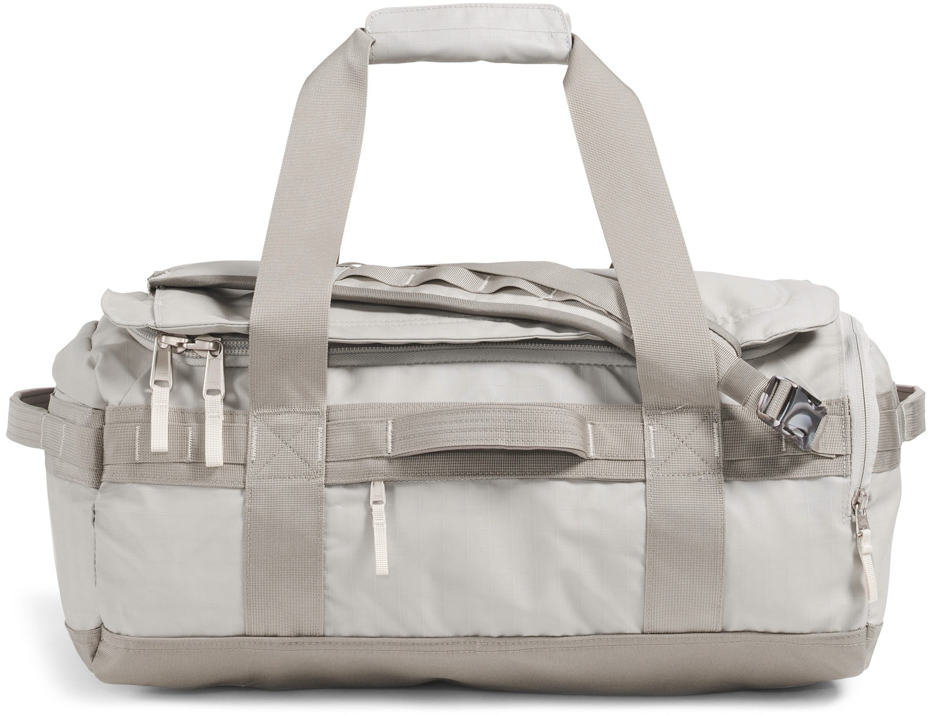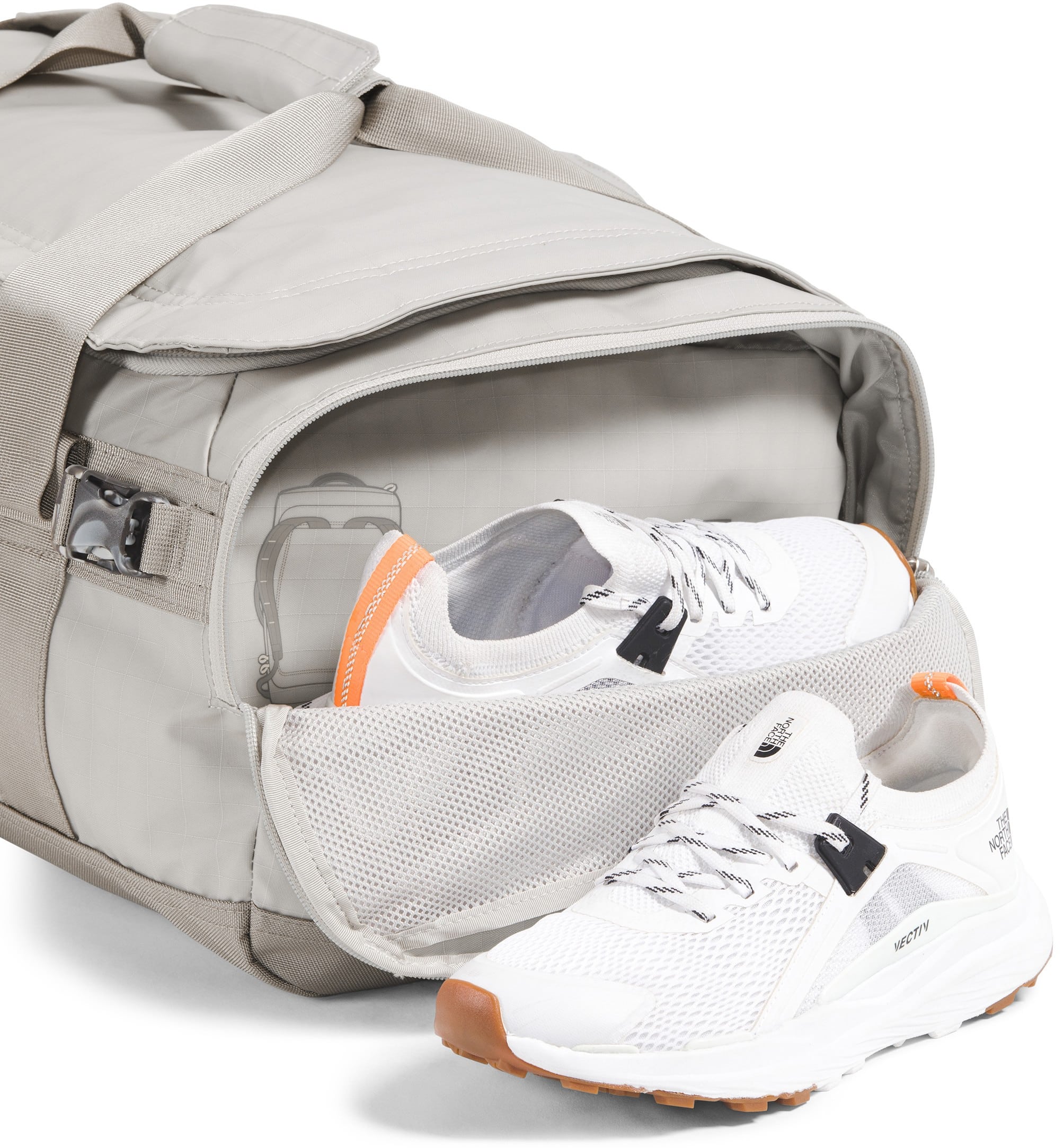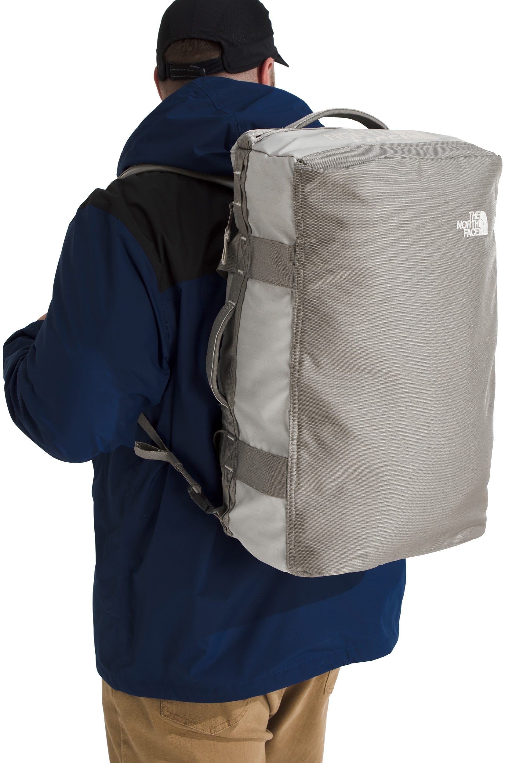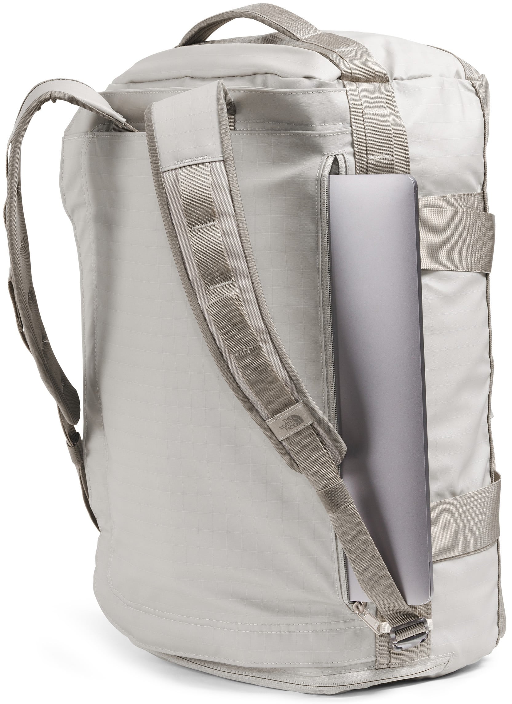 The North Face Base Camp Voyager 42L Duffel is a lightweight, carry-on-sized travel hauler featuring a removable and adjustable internal divider, allowing you to easily separate clean clothes from dirty gear or shoes during weekend trips. Its 300D recycled polyester tarpaulin construction is paired with padded, concealable shoulder straps, letting you switch from a duffel to a backpack for hands-free mobility through crowded airports. Designed for modern travel, it also includes a secure-zip padded laptop sleeve that fits devices up to 15", ensuring your tech stays protected while remaining accessible without opening the main compartment.