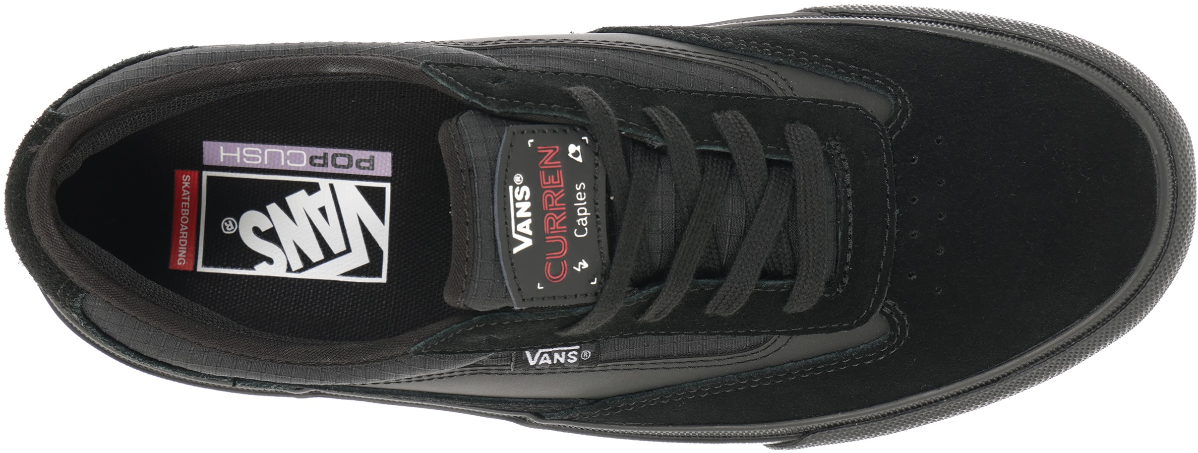Introducing the Vans Curren Caples. Crafted as a signature low-top skate shoe, Curren's first pro model is specifically designed to meet the demands of skateboarding, boasting enhanced durability and performance features. The upper combines sturdy suede and 10 oz canvas, for both breathability and resilience. Inside, PopCush footbeds provide superior impact protection, reducing leg fatigue for those extended skate sessions. Finally, the innovative Wafflecup construction merges the support and durability of a cupsole with the coveted board feel and flexibility of a vulcanized shoe.
