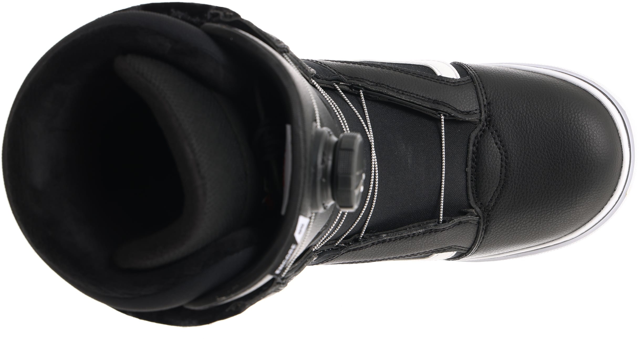 Boa Coiler Closure System - This tongue mounted single reel system utilizes a springloaded lace spool to automatically retract the lace cable slack for quick and efficient closure. Different lace guide radii are used to optimize closure force in specific areas of the boot.