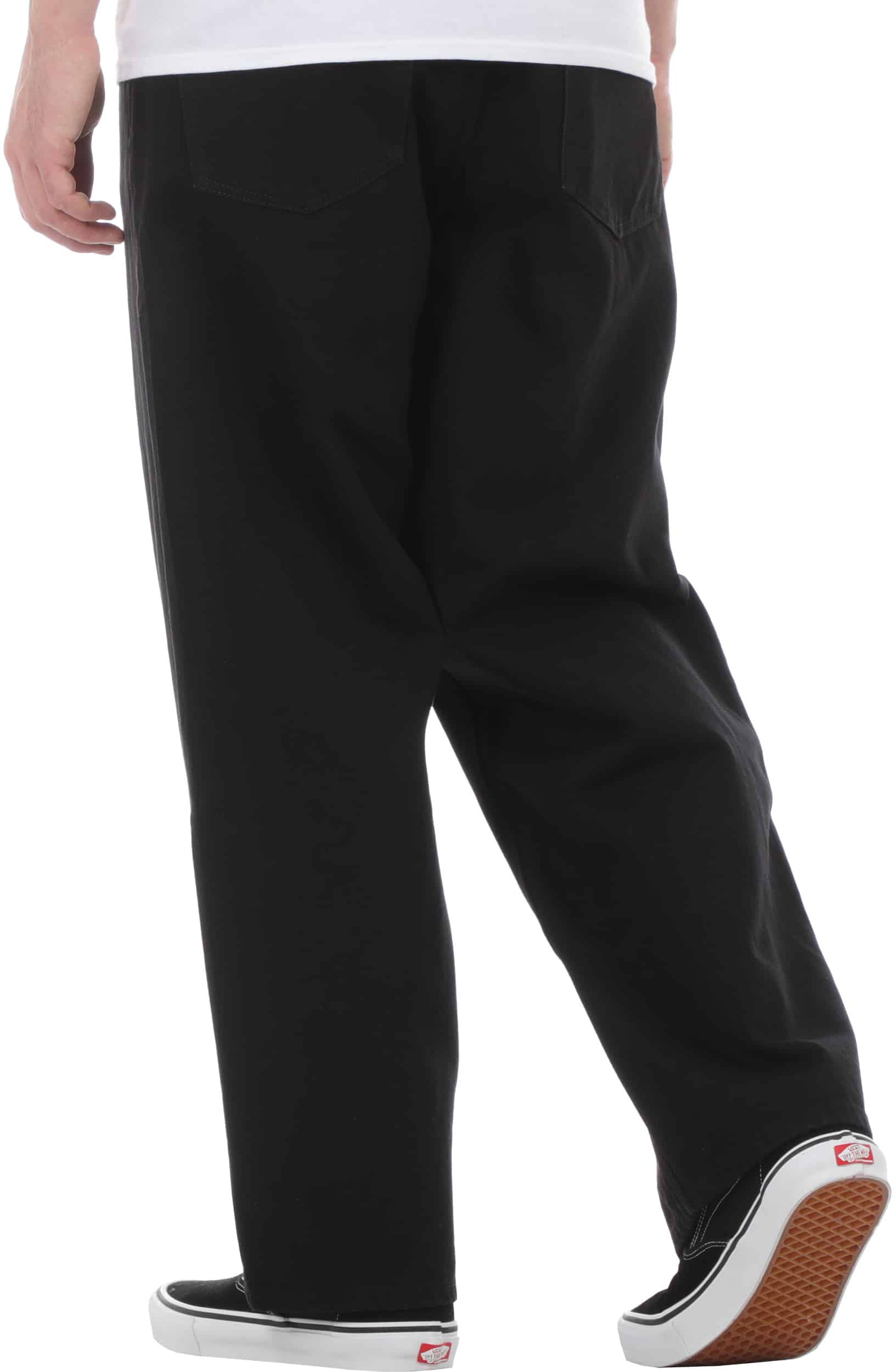 Chillow Denim brings a loose fit with a low rise below the waist, a roomy 19-inch leg opening (30-inch inseam on size 32). Tough 100% cotton high-ridge twill in New Black, garment washed for comfort. Finished with signature Volcom Brand Jeans details and our Volcom Water Aware process.